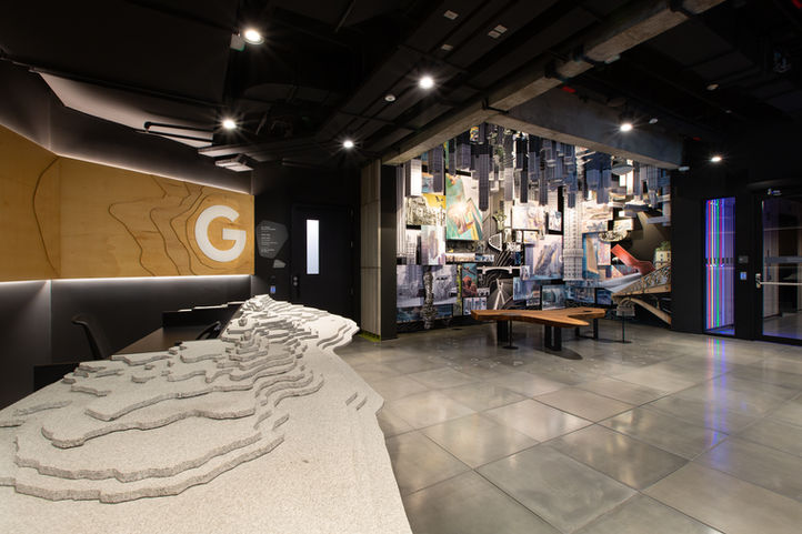 To complete the experience, Superlimão explored topographical aspects of the São Paulo territory. Right at the entrance, the reception desk, modeled and sculpted exclusively for Google, forms the mountain ridge of Avenida Paulista in a rare aerial perspective. On the wall, a wooden panel represents the area where São Paulo was founded – the hill that today houses the Pátio do Colégio, the São Bento Monastery, and the São Paulo Cathedral.